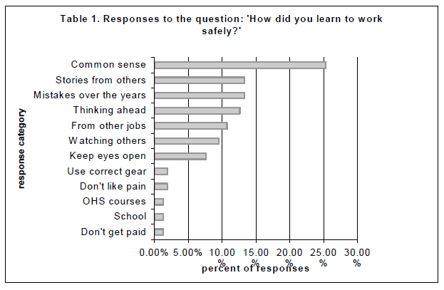 This is the second post relating to the same paper as yesterday. The below image summarises responses from the subbies on how they learned safety in their trade (discussed yesterday). See part 1 here.