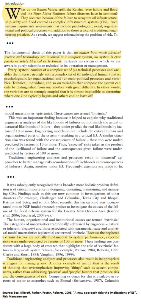 Source: Bea, Mitroff, Farber, Foster, Roberts, 2009, “A new approach to risk: the implications of E3”, Risk Management.