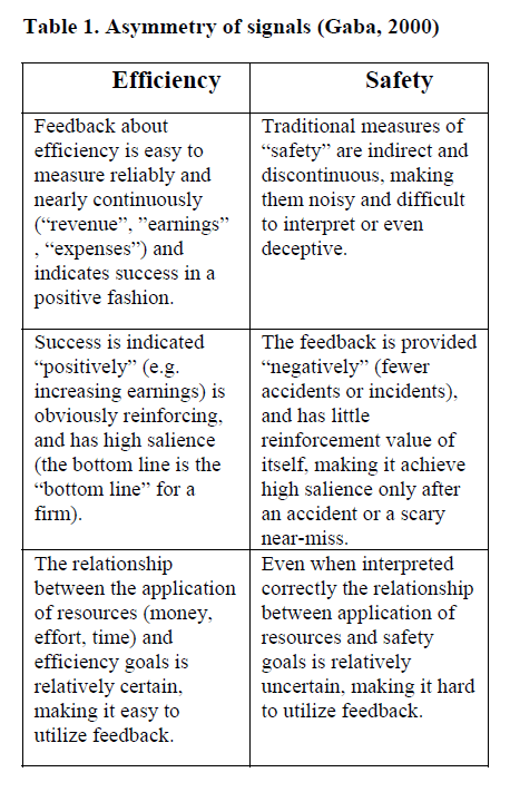 In both areas, most organisational efficiency trends were influenced by national and international societal characteristics. These examples show that “micro-level trade-offs occur as a result of macro-level drift” (p8). Indeed, multiple examples of the adaptations of local practices to suit macro policy changes show departures “from the “Safety first!” consensus thereby reducing safety to a secondary goal” (p8).