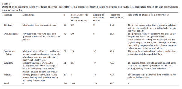 The factors of efficiency, organisational and patient pressures were rarely traded-off when they were observed, suggesting that “that these may be prioritised by healthcare teams more than the other pressures when determining risk trade-offs”.
