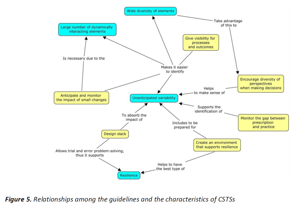 An interesting diagram from Saurin et al. of how the elements of complex sociotechnical systems (CSTSs) interact with guidelines for managing CSTSs.