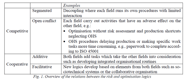 Two logics relevant for the paper are then discussed: 1) risk logic for OHS management, 2) optimisation logic for OPM.