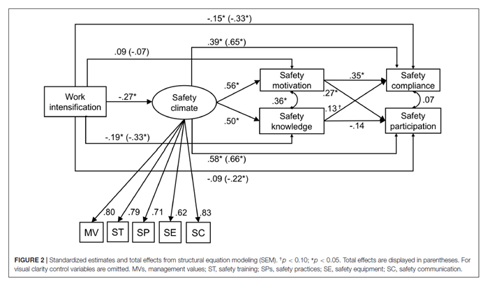 WI was also found to negatively impact performance and indirectly worsens SC. That is, “work intensification not only directly negatively affects safety performance but also indirectly affects it through worsening the organizations’ safety climate. Safety climate, in turn, directly and indirectly affects safety performance” (p9).