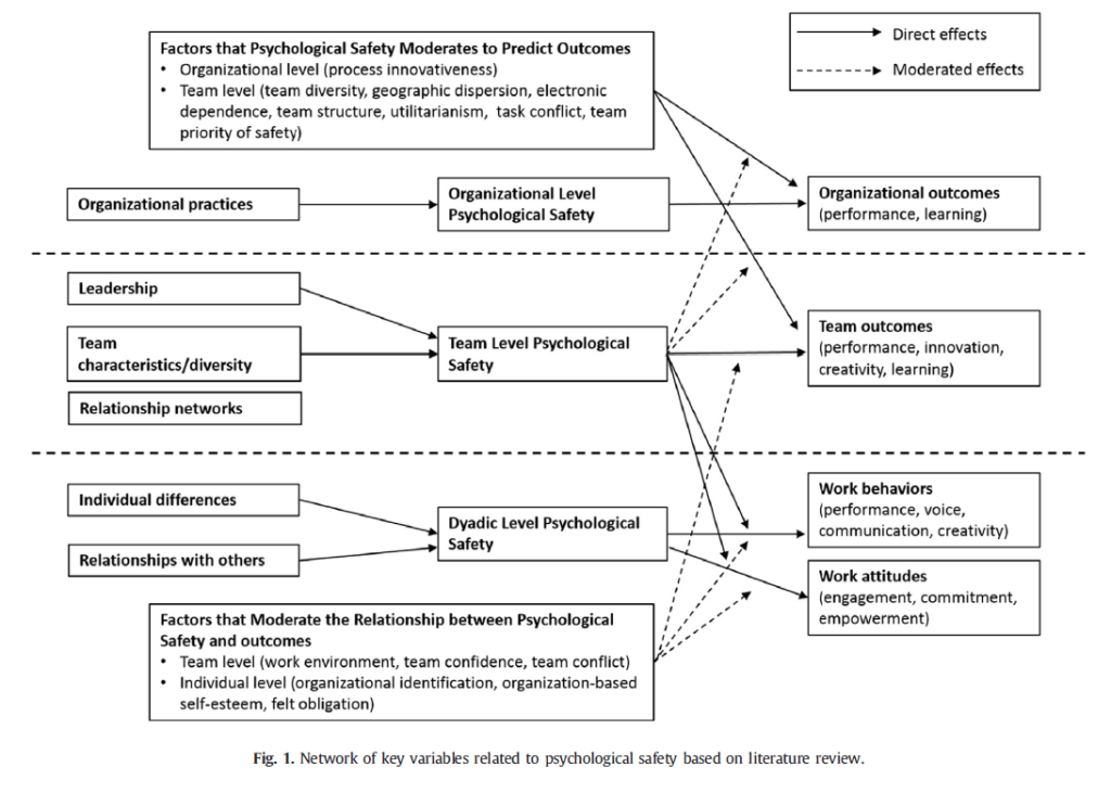 This study systematically reviewed the evidence of Psychological Safety (PS) up to 2015. 83 studies were included.