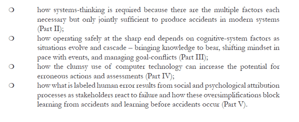 #10 indicates that “lawful factors” govern performance. Regarding people, “Errors are not some mysterious product of the fallibility or unpredictability of people; rather errors are regular and predictable consequences of a variety of factors” (p25).