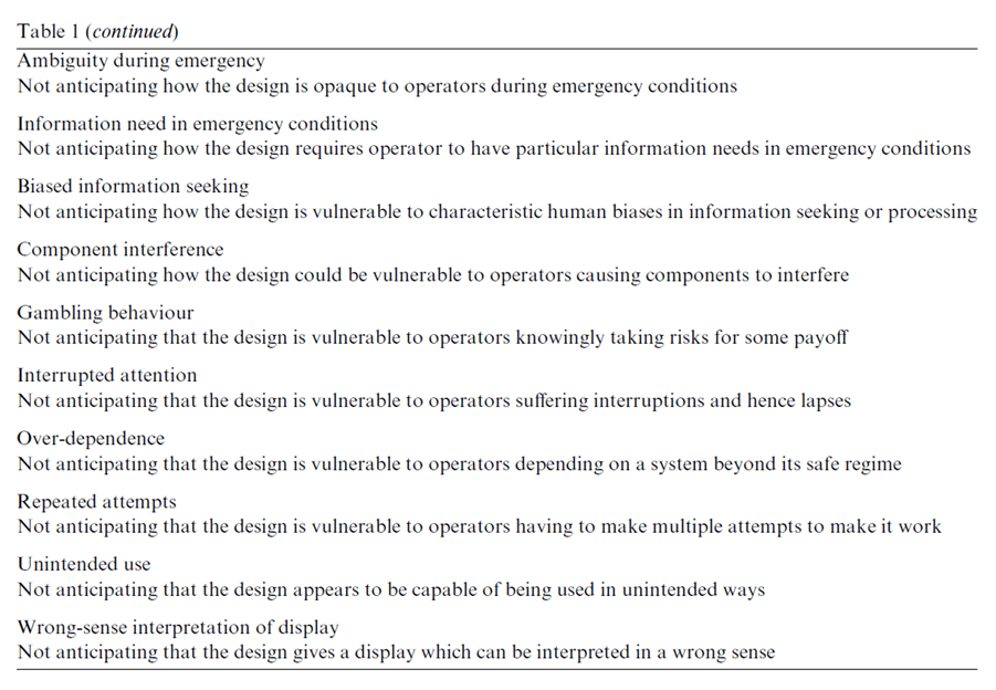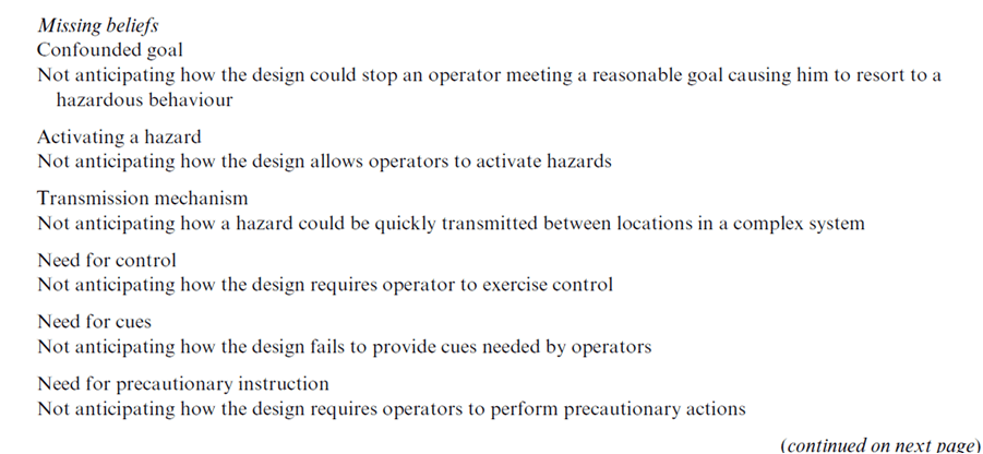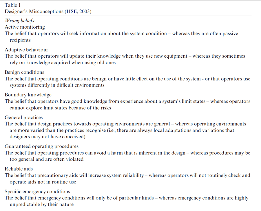 They provide the key designer misconceptions from the UK HSE report, shown below: