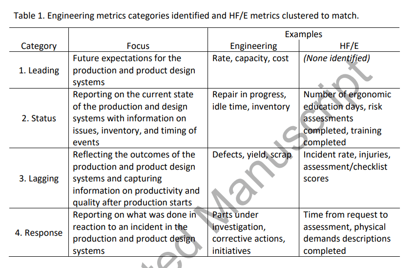 One thought on “Examining human factors and ergonomics aspects in a manufacturing organisation’s metrics system: measuring up to stakeholder needs”
