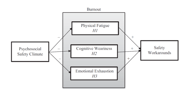 This explored the indirect effects of psychosocial safety climate (a type of safety climate and not psychological safety) on workarounds via mediation of physical fatigue, cognitive weariness and emotional exhaustion.