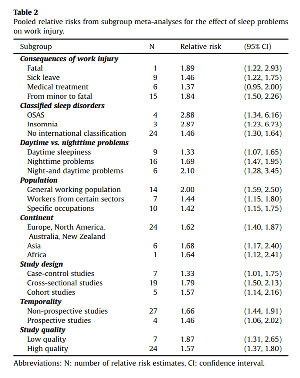 They conclude that somewhere around 13% of work injuries had sleep problems as a contributing or central factor.