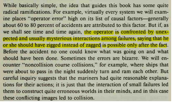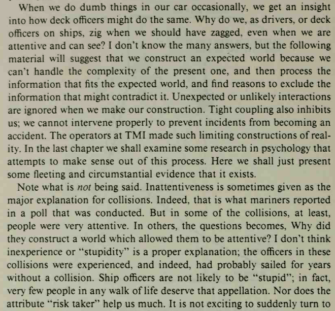 Whether you subscribe or not to Normal Accident Theory, the book (and his follow-up work) have so much more to offer – in my view quite insightful and prescient in areas.