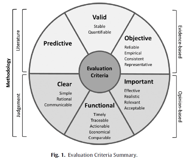 Next the authors discuss the “strategic combination” of metrics and how to buttress the relative weaknesses of indicators to be more complimentary. They use groupings of radar graphs to highlight the evaluation performance of each indicator, so this section I describe will be clearer if you can access the paper.