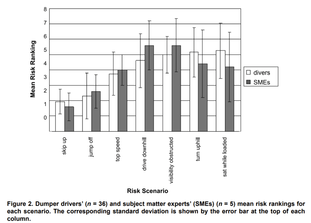 This studied perceptions of risk & links to behaviour of UK construction site dumpers and Subject Matter Experts (SMEs). 40 construction site dumper drivers and 7 SMEs ranked their perceived risk of various scenarios encountered during dumper operation.