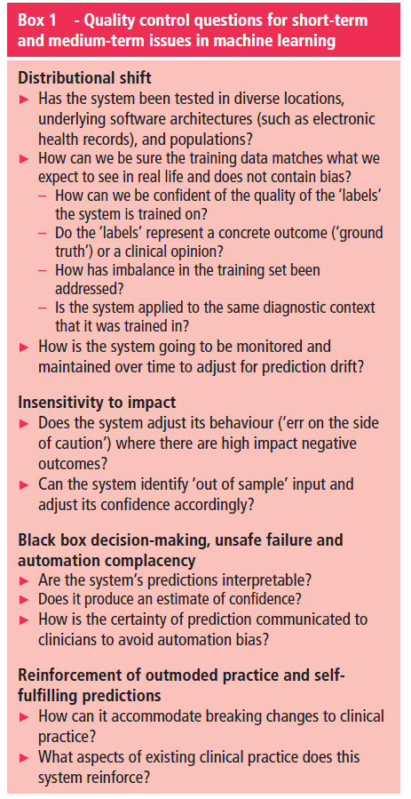 Source: Challen, R., Denny, J., Pitt, M., Gompels, L., Edwards, T., & Tsaneva-Atanasova, K. (2019). Artificial intelligence, bias and clinical safety. BMJ Quality & Safety, 28(3), 231-237.