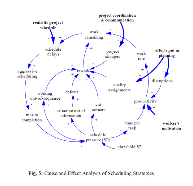 For those interested, they also provided a causal loop diagram on the links between pressures and how certain scheduling practices may exacerbate or attenuate the effects:
