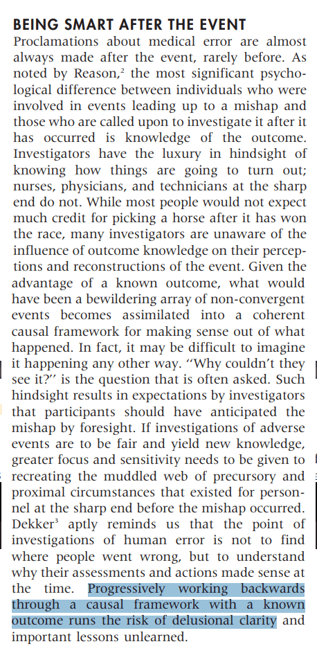That is, “Progressively working backwards through a causal framework with a known outcome runs the risk of delusional clarity” (pg. ii46, bold added).