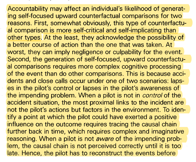 I just summarised a 2000 paper on the role of counterfactual thinking on learning lessons from near accidents in aviation.