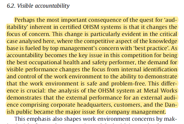 4) They argue “One possible explanation for the difficulties in dealing with psychosocial work environment issues within certified OHSM systems is thus that the psychosocial work environment is complex, has multiple causes, and appears difficult for management to articulate clearly”