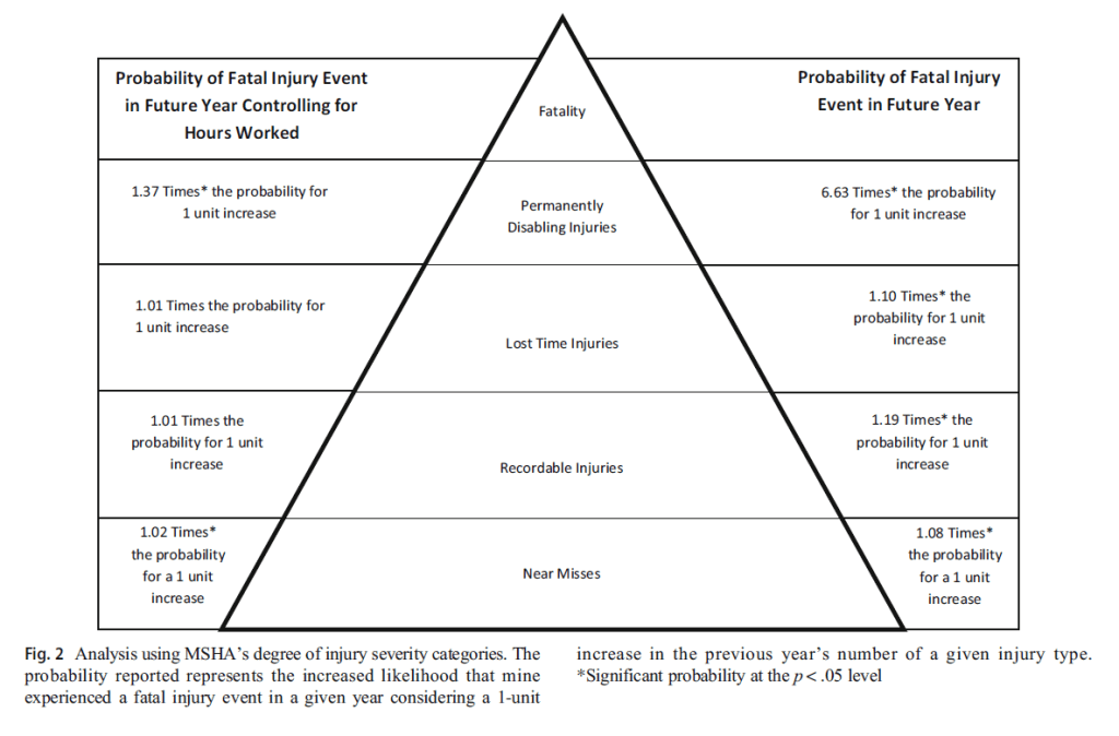 This study analysed 13-years of data from the Mine Safety & Health Administration’s (MSHA) database, incorporating 772 fatalities to see whether the safety triangle predicted subsequent injuries or fatalities.