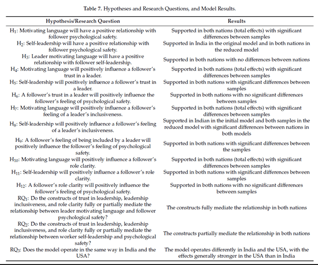 o Mediation fully explained motivating language’s relationship with PS, but only partially explained self-leadership relationship