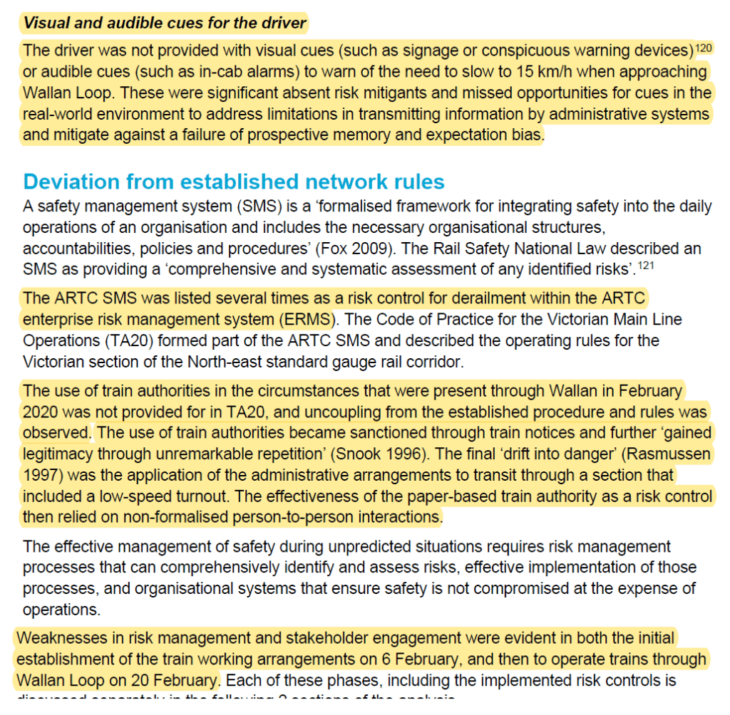 Among many factors, they identified that the driver didn’t receive notable visual cues to warn of the approaching Wallan loop. See image 1.