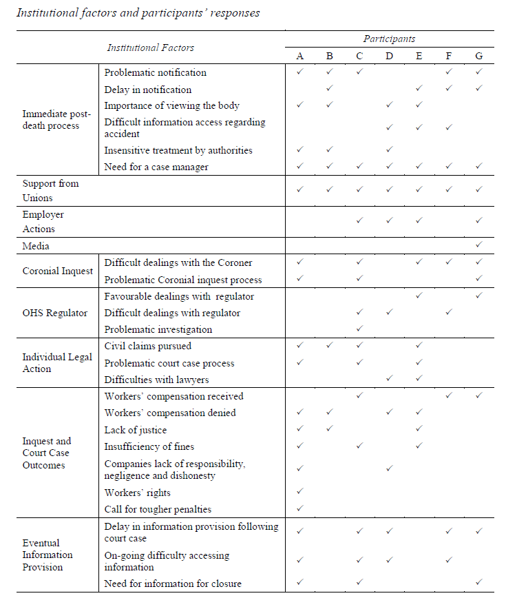 Are the institutional responses following workplace deaths adequate for the surviving families?