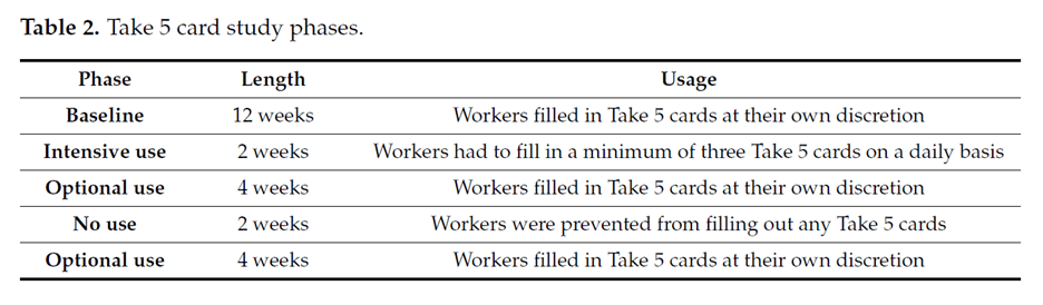 One thought on “Should We Cut the Cards? Assessing the Influence of “Take 5” Pre-Task Risk Assessments on Safety”