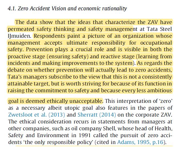 For one, ZH thinking “have permeated safety thinking and safety management at Tata Steel”, where respondents “paint a picture of an organization whose management accepts ultimate responsibility for occupational safety”.