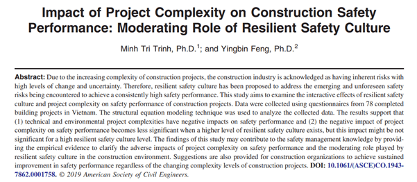 · The negative impact of project complexity on safety performance “becomes less significant when a higher level of resilient safety culture exists, but this impact might be not significant for a high resilient safety