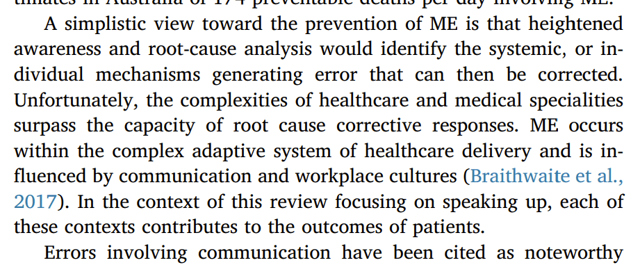 However, this underappreciates the “complexities of healthcare and medical specialities [that] surpass the capacity of root cause corrective responses”.
