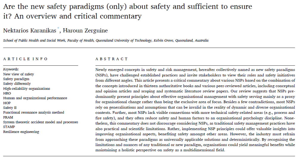 Nektarios Karanikas and Haroun Zerguine argue that new safety paradigms, HOP, S-II, SD etc.: