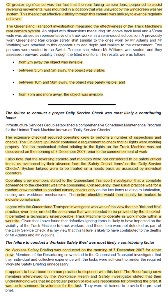 One thought on “Coroners report detailing tick and flick processes, inadequate track protections, and production pressure”
