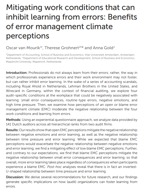 van Mourik et al. explored the interaction between the role of specific learning orientations in financial auditing that enhance or limit learning.