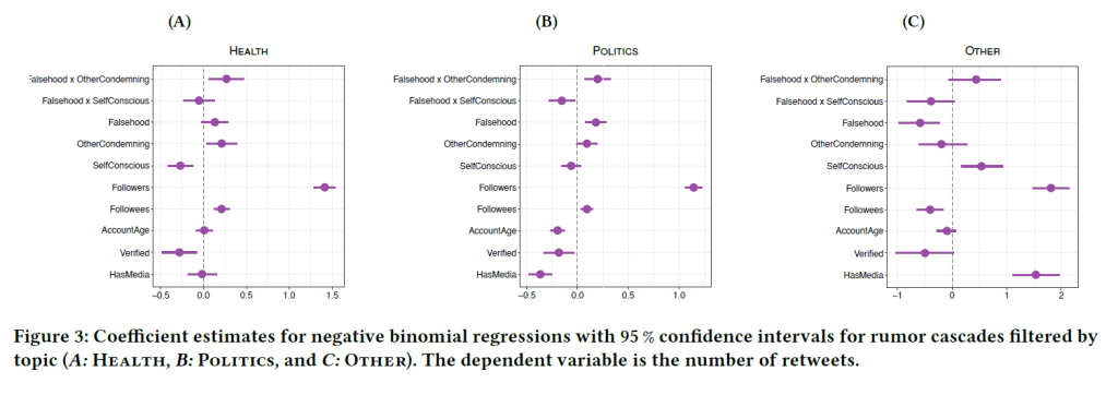 Ref: Solovev, K., & Pröllochs, N. (2022, April). Moral emotions shape the virality of COVID-19 misinformation on social media. In Proceedings of the ACM web conference 2022 (pp. 3706-3717).