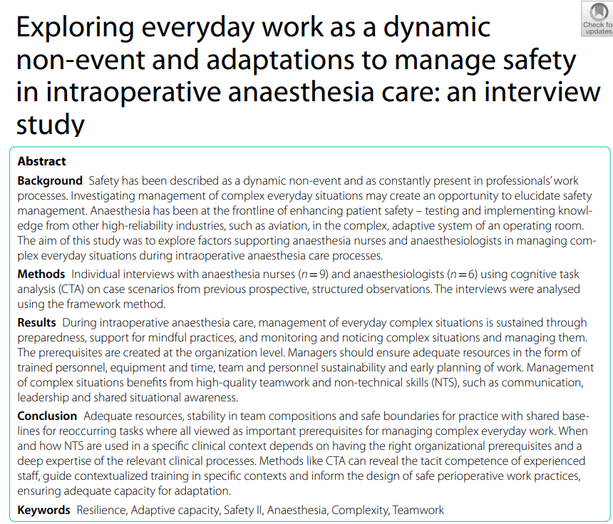 A study to be posted soon evaluated everyday work via cognitive task analysis to map the factors that enabled surgical staff to navigate complex work and situations.