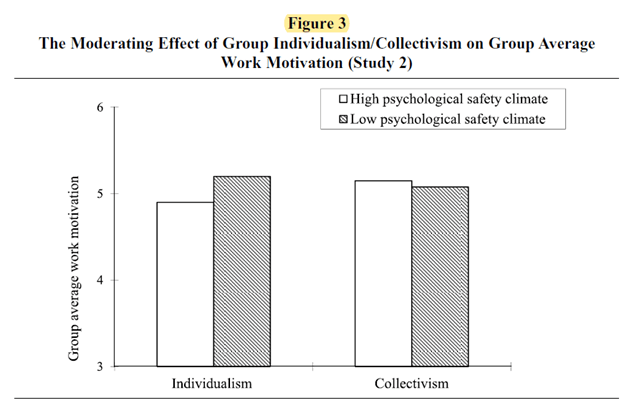 In certain group configurations, higher PS may “create a “zone of egocentrism” where motivation for group success is reduced”. Hence, in individualistic groups, “low psychological safety climate is actually desirable for maintaining work motivation for group tasks”.
