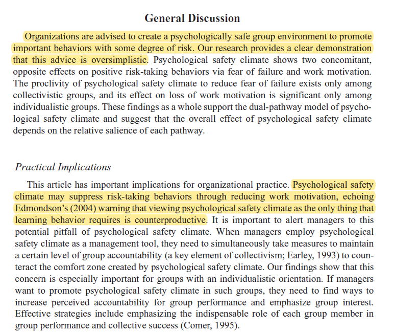 Another study highlighting potential limits of psychological safety (PS).