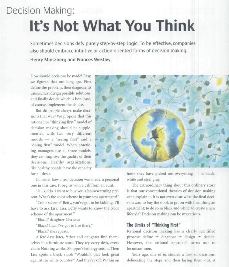 Article link: http://hiba.edu.sy/FCKBIH/Mintzberg%202001%20DM%20It’s%20Not%20What%20You%20Think.pdf