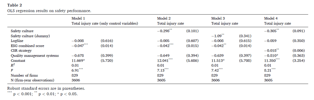 · Safety culture improves safety performance since it significantly reduces the number of accidents at work.