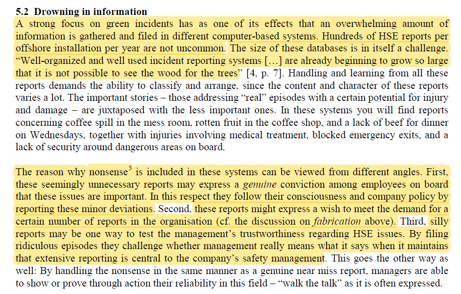 One thought on “Safety management, bureaucracy, and incident systems drowning in seas of information”