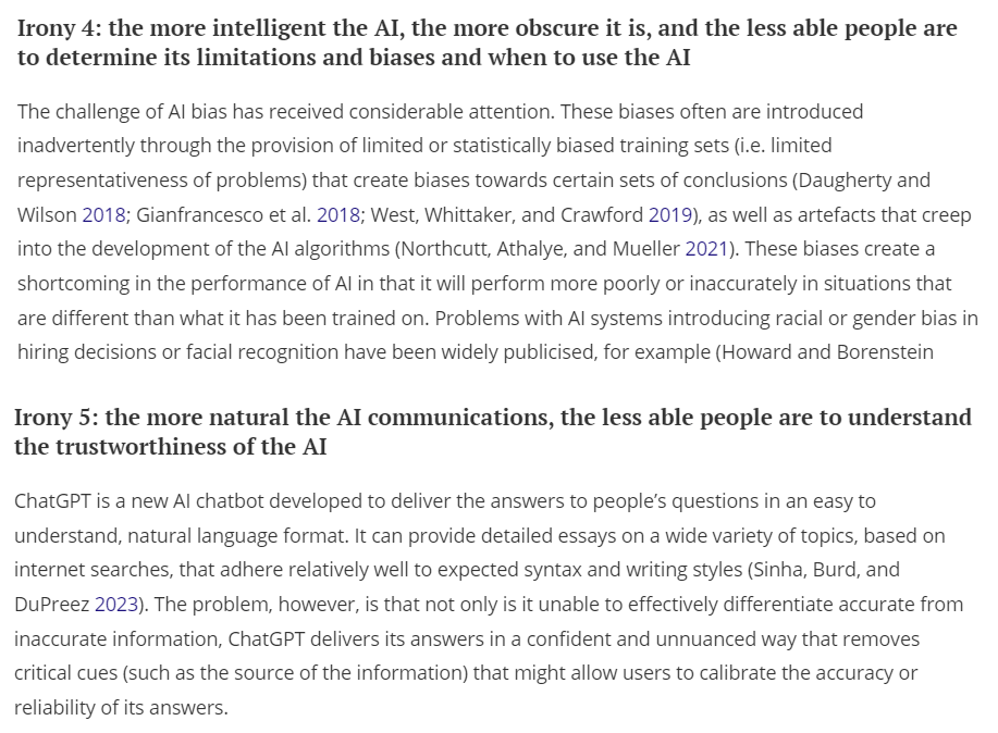 Endsley proposes five ironies of AI: