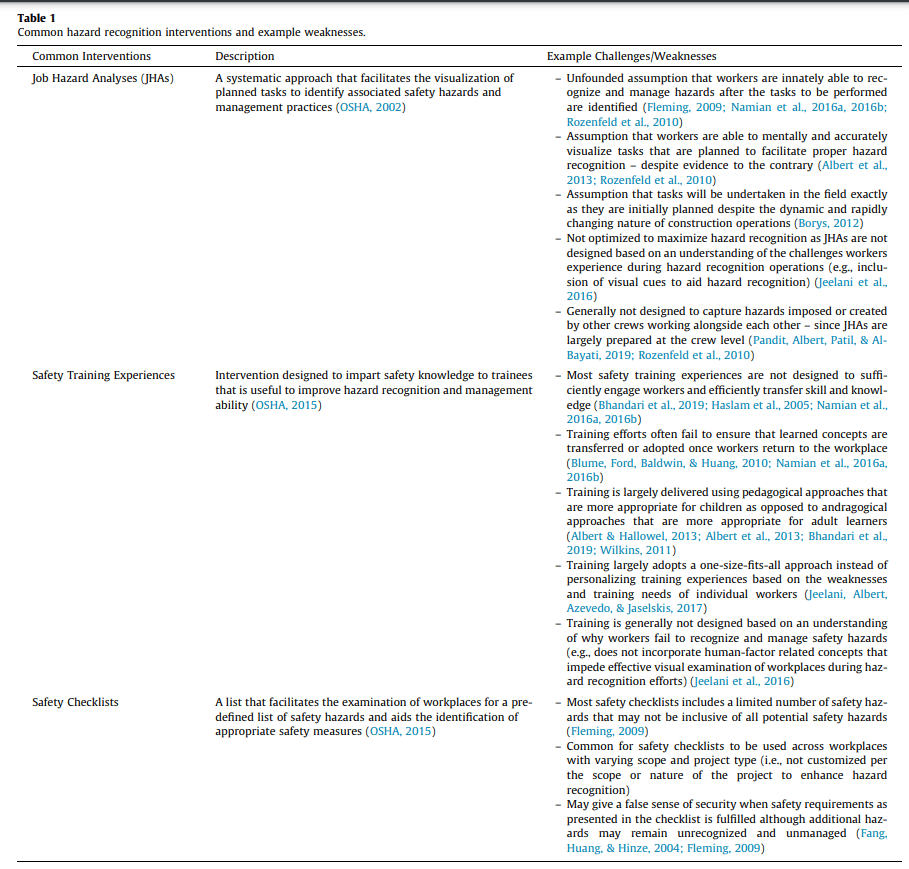 Despite a plethora of interventions like JSAs, checklists and training the authors argue that a disproportionate number of safety hazards continue to remain unrecognised even when these interventions are used.