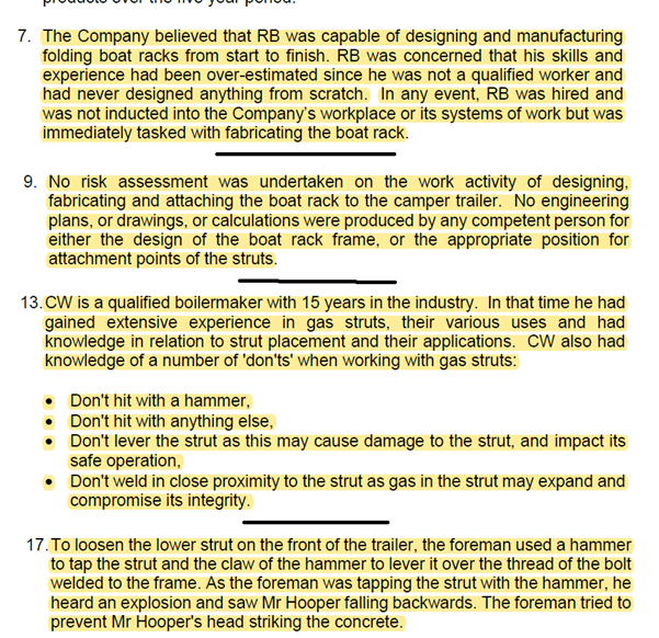 · The company believed that the killed worker was capable of designing and manufacturing the necessary components, while the worker was concerned his skills had been over-estimated since he wasn’t a qualified welder, nor had he designed anything from scratch