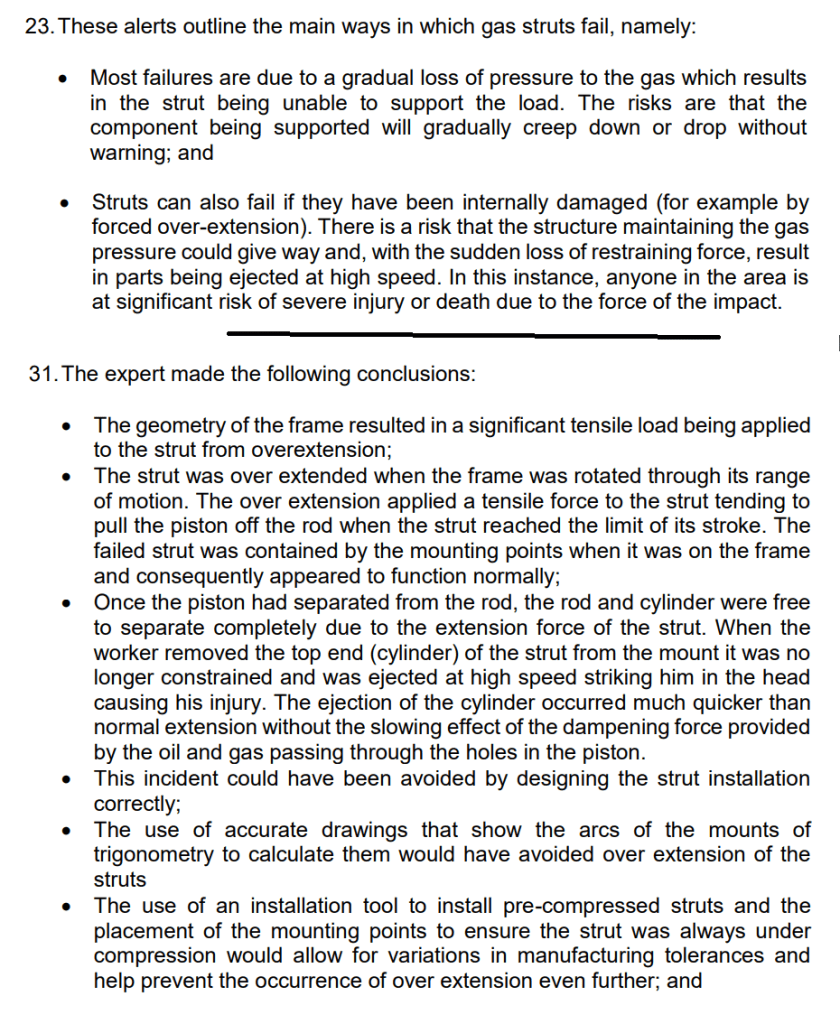 One thought on “Coroners report: exploding gas strut; poor manufactured quality, no engineering design, drawings or advice, lack of risk assessment on installation process”