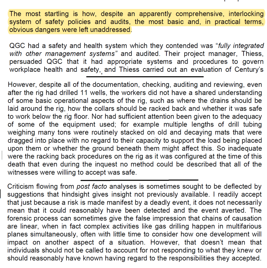 The first two examples came from coronial reports in mining. It’s a shame that such important findings are so frequently ‘written in blood’.
