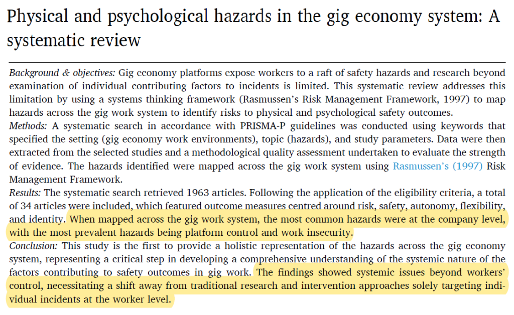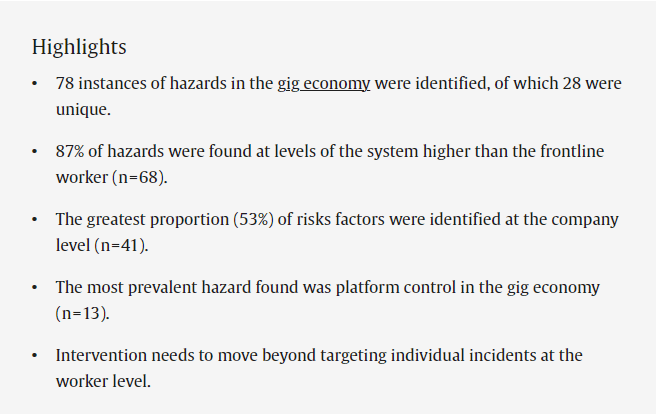 I found this an interesting study that systematically reviewed the evidence on the physical and psychological hazards in the gig economy system.
