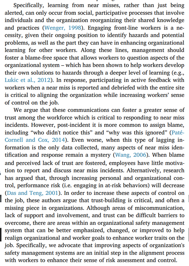 They direct some criticism towards process and chemical industries, for instance, around their hindered learning mechanisms. These findings suggest that “workers’ individual factors need to be considered and addressed when deciding how to disseminate aspects of safety management”.