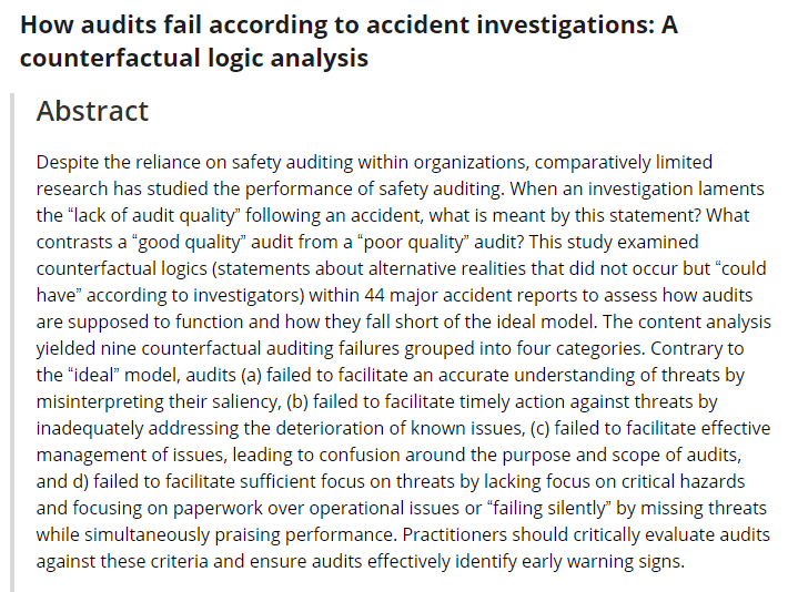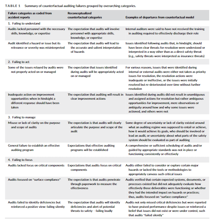 1) Audit failure according to accident investigations: https://doi.org/10.1002/prs.12579