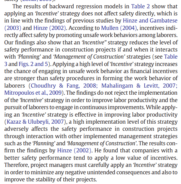 Specifically from this study, incentives didn’t directly impact safety, but indirectly via interactions with planning and management of construction strategies.