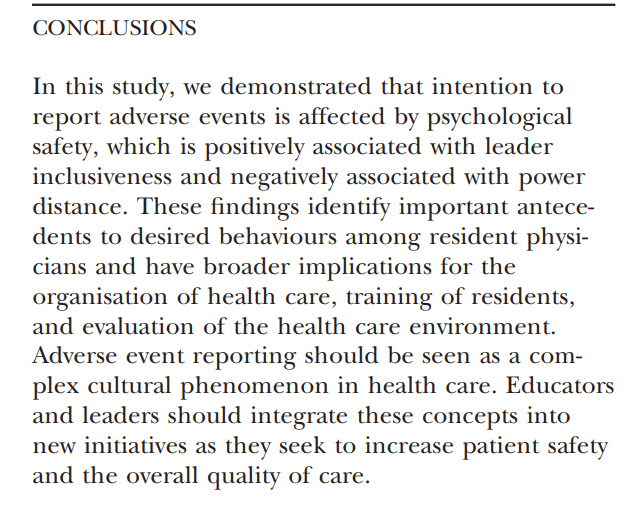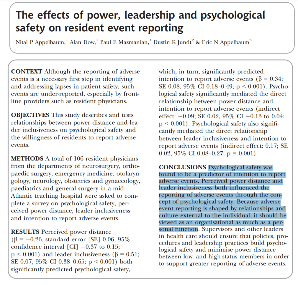 2 thoughts on “The effects of power, leadership and psychological safety on resident event reporting”
