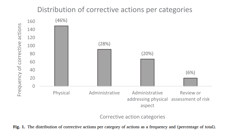 The hierarchy of control categorises administrative corrective actions, such as procedures, as relatively weaker controls. However, our coding scheme acknowledges that certain procedural changes can have a significant impact on operational practices and risk control when implemented at a deep and functional level. Despite our coding scheme giving the “benefit of the doubt”, most administrative corrective actions were weakly linked to the issues they were intended to address.